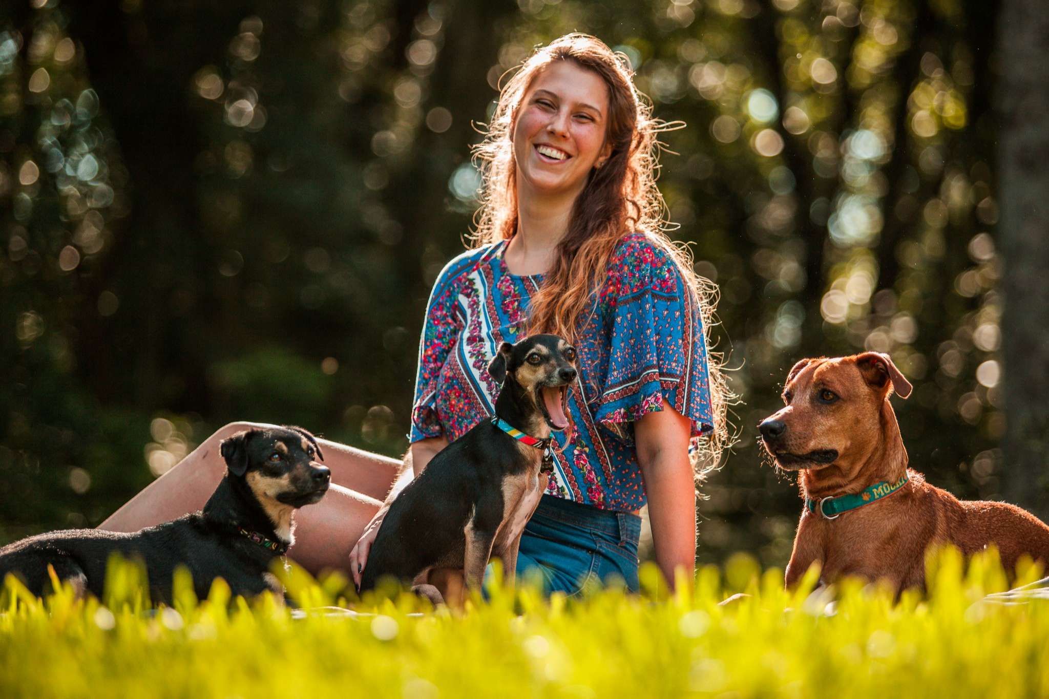 Mônica Tergolina é mãe de 3 cães reativos, o Mocki, Bacon e a Costelinha. Depois de anos passando perrengue com eles, se tornou adestradora e desenvolveu o seu método para dar paz e tranquillidade para mães de pet que, como ela, têm cães reativos.