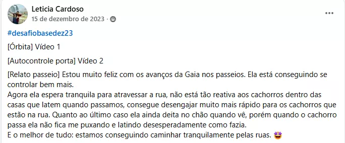 Seu maior objetivo é ajudar mães e pais de pet que sofrem com a reatividade e o caos no dia a dia a adestrarem seus próprios cães para terem uma vida mais feliz com seus cães reativos, ansiosos ou medrosos.